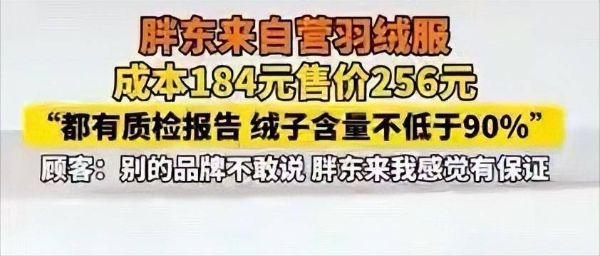 今年胖东来的羽绒服与去年一样卖到爆,催生了代购生意,胖东来的销售标签上也公开自己的成本和利润,184元的成本、256元的售价,90%的绒子含量,还附带第三方质检报告。72块钱的利润,毛利率不到30%。