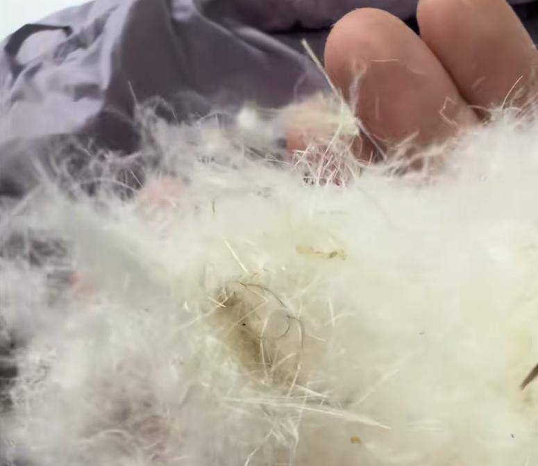 线 绒的批发价很贵,而回收绒成本只有零头,一件衣服能多赚几十上百元。拆旧的羽绒,摇身一变成了所谓的工厂尾货、XX原单,随便打个吊牌,就这样流入市场了。