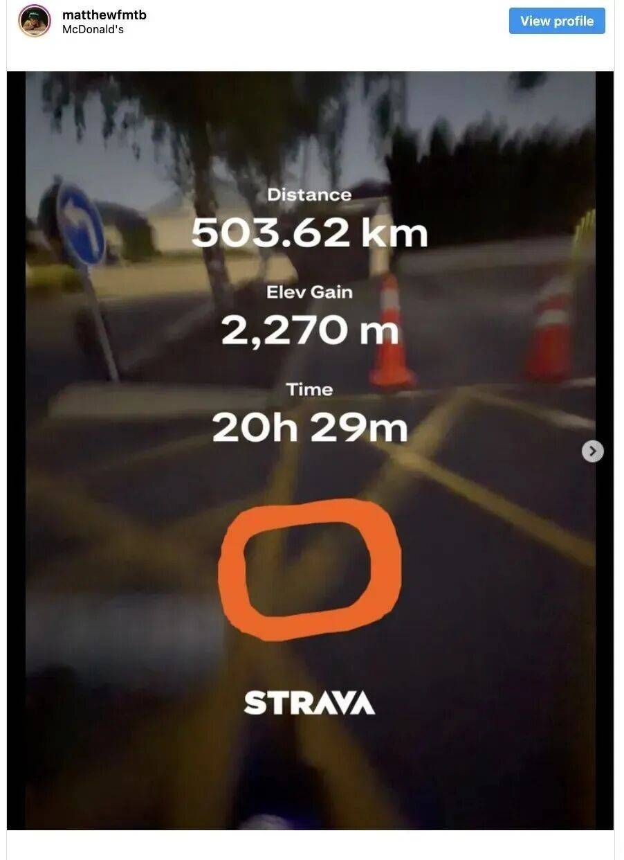 纽西兰自行车手Matthew Fairbrother重新定义了Rapha 500公里挑战。他没有选择在开阔的道路上骑行,而是在一家麦当劳得来速餐厅的单车道内完成了全部500公里的骑行(当时正值圣诞节,餐厅关闭)。