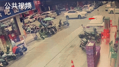▲一辆白色小车右转弯时,左前轮撞到正处于车辆盲区内蹲在路边玩耍的5岁儿童,事故造成儿童轻微受伤。